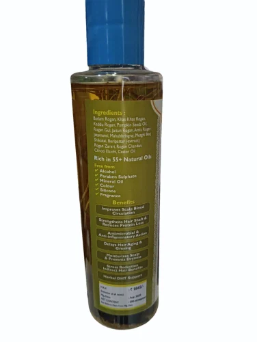 Cold-pressed Ayurvedic hair oil for hair fall control and scalp nourishment.