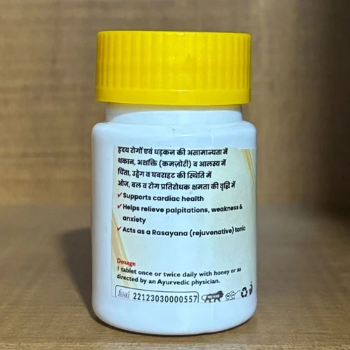 Arjuna-based Ayurvedic cardiac support tablet. Helps relieve palpitations, anxiety, and weakness. Acts as a rejuvenative tonic.